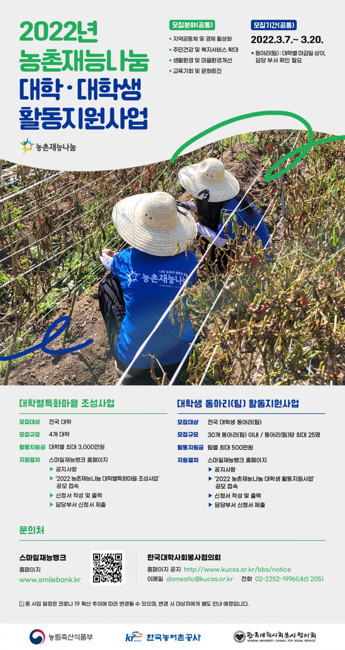 2022년도 ‘농촌재능나눔 대학별특화마을조성사업’