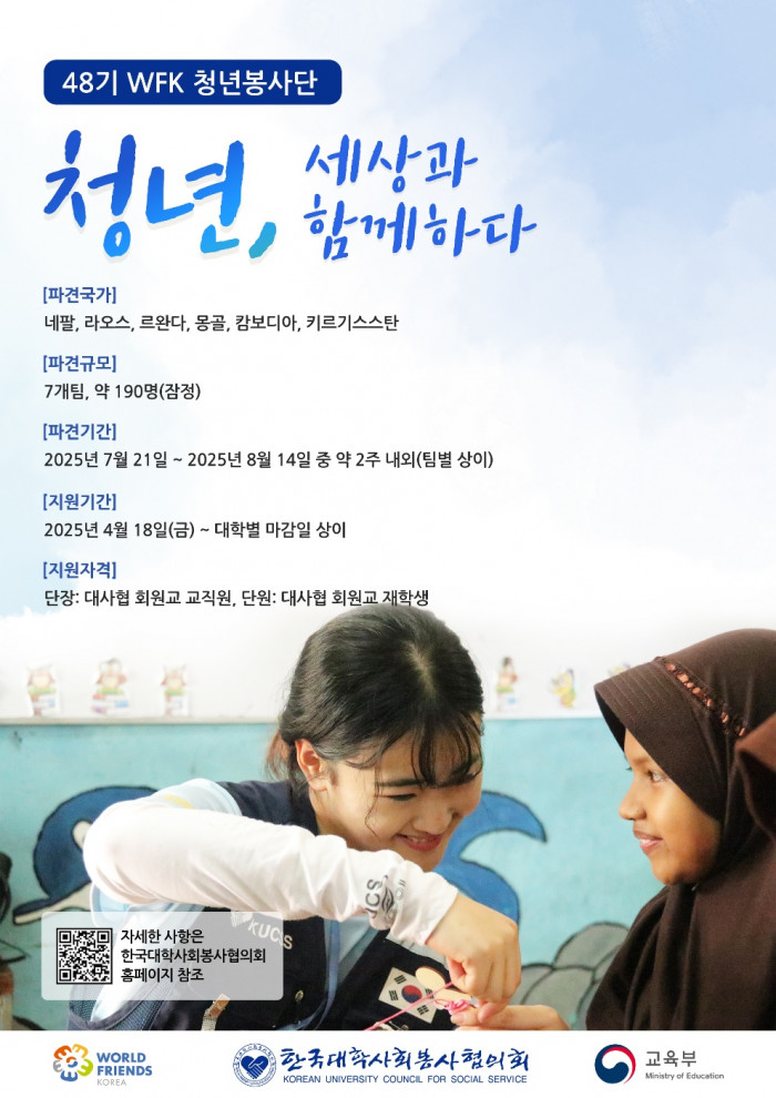 - 03. 48기 WFK 청년봉사단 단원 모집 안내서학생용_수정.hwp (417.0K) 12회 다운로드 | DATE : 2025-04-28 11:48:31